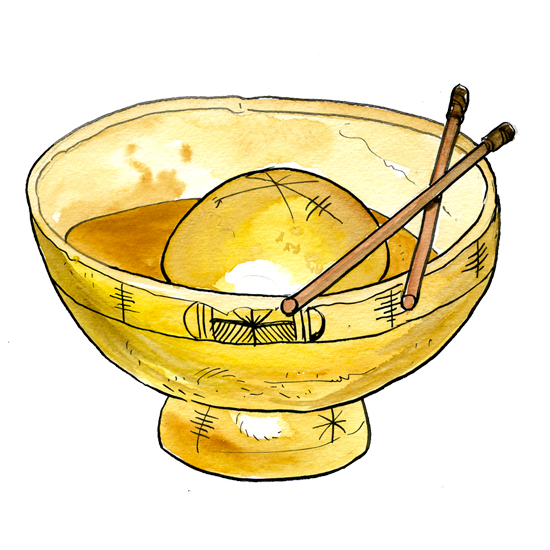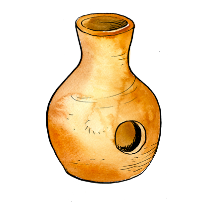 Instrument Peul constitué d’une calebasse retournée, frappée avec les mains.