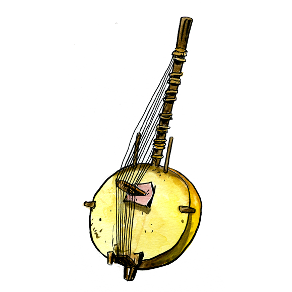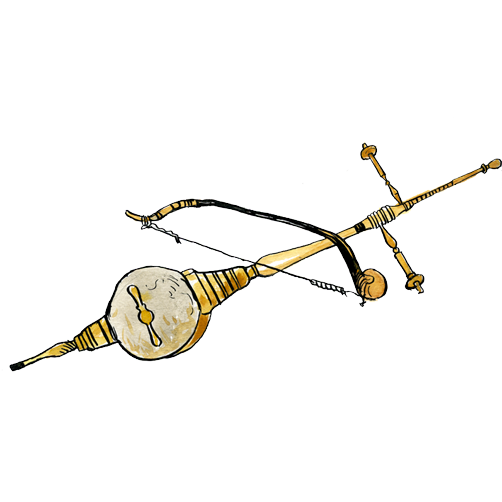 Ces instruments combinent les caractéristiques d’un luth (position du manche dans le prolongement de la caisse de résonance) et de la harpe (disposition des cordes). Deux montants traversent la table : lapartie qui dépasse permet au musicien de maintenir l’instrument pendant le jeu, le pouce et l’index de chaque main pincent les cordes.