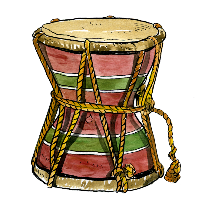 Le terme Tama désigne les tambours à tension variable de l’ouest africain. Le musicien frappe une seule membrane avec une baguette recourbée, il en modifie simultanément la tension en exerçant une pression plus ou moins forte sur le système de laçage.