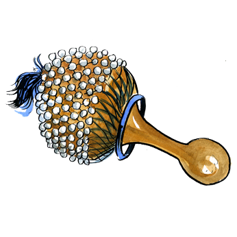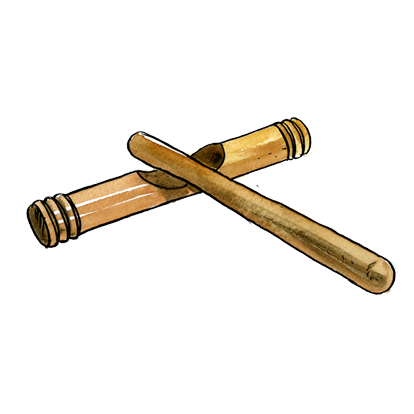 Une tige de bois est fixée au centre de ce tambour à une mmbrane. La friction de la tige avec un linge humide ou les doigts mouillés du musicien produit un son. On modifie la hauteur du son par une pression sur la membrane avec l’autre main. Instrument d’origine africaine.