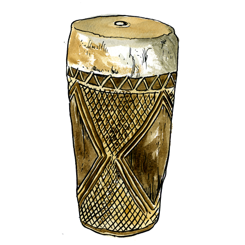 Tambour des musiciens professionnels mandingues. Il est destiné à faire danser. Frappé à mains nues, sa sonorité est très puissante.