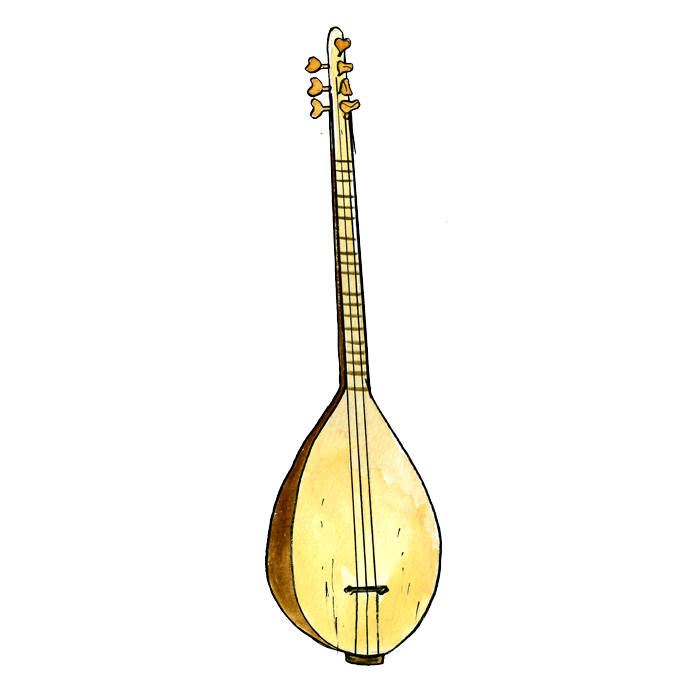 Instrument populaire qui accompagne les chansons des musiciens ambulants. Le manche est pourvu de frettes ajustables pour changer leur position et jouer des échelles avec précision.