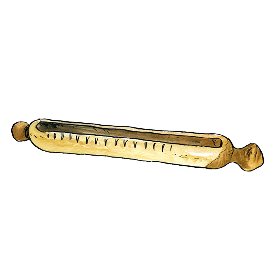 Instrument très ancien, la racle serait d’origine paléolithique. La surface cannelée est frottée par une tige de bois ou de métal.
