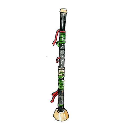 Instrument touareg, la sarewa est constituée d’une tige de sorgho consolidée par des ligatures de cuir.
